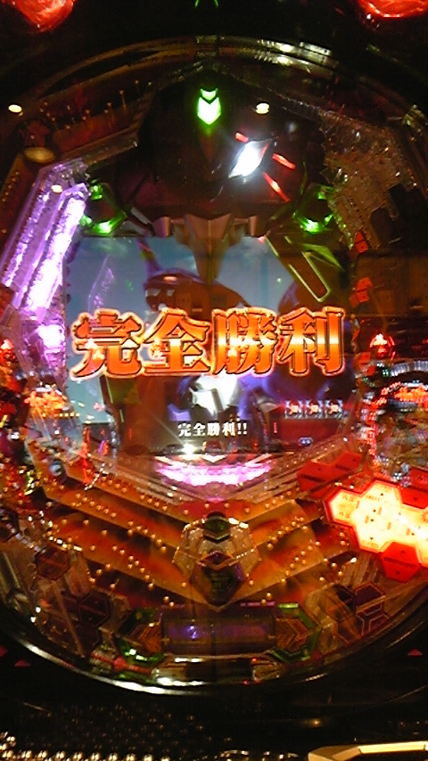 早速、新台をすべてスルーしてエヴァ5へ、1台だけ0回転の台が落ちてたので座りまして1000円で掛かりました、30回転ぐらい指令室で「なかなかステージ変更ないな~」って思ってたらボタン(赤)リツコ「あっ、そこ、A-8の方が速いわよ」で2段階目へ発展マヤ「さっすが先輩♪」モノリス1234点滅(真中なし)(ここまでの推定信頼度13~16%ほど)その後普通にエヴァ発進(ホワイトアウト時とりあえずボタン連打w)初号機前ムービー発生中に役モノ咆哮発生(この時点で大当たり確定)その後は何事もなく完全勝利!し昇格演出なし、ゼグはハズレで、シンジモードへ何事もなく時短終了、その後115回転頃にボタン(赤)冬月先生「3年ぶりの対面か・・・」(リーチ確定)・SU3・モノリス全点滅(普通)・レイ背景・弐号機単機発進(推定信頼度45~55%ほど)第6使徒VS初号機へ発展、BGM変化(ここで大当たり確定)間に合えカットイン発生後勝利!昇格演出なしゼグ死亡、アスカモードへ何も特になく時短終了(ここの時点で本日分当たり終了)