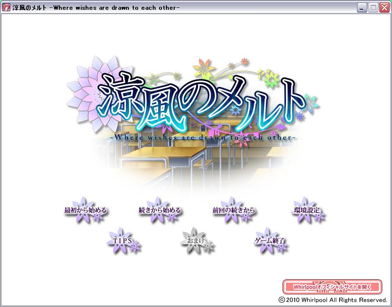 んで、今はちょっと遅いけど渦の「涼風のメルト」やってます、まだ誰も攻略してないよ、誰を攻略するかも決めてない状態です、なんていうかてんまそいいね、最高です。