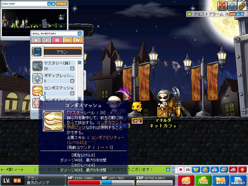 さっきまでメイプルの方をやっておりました、もくもくと一人でレベル上げを